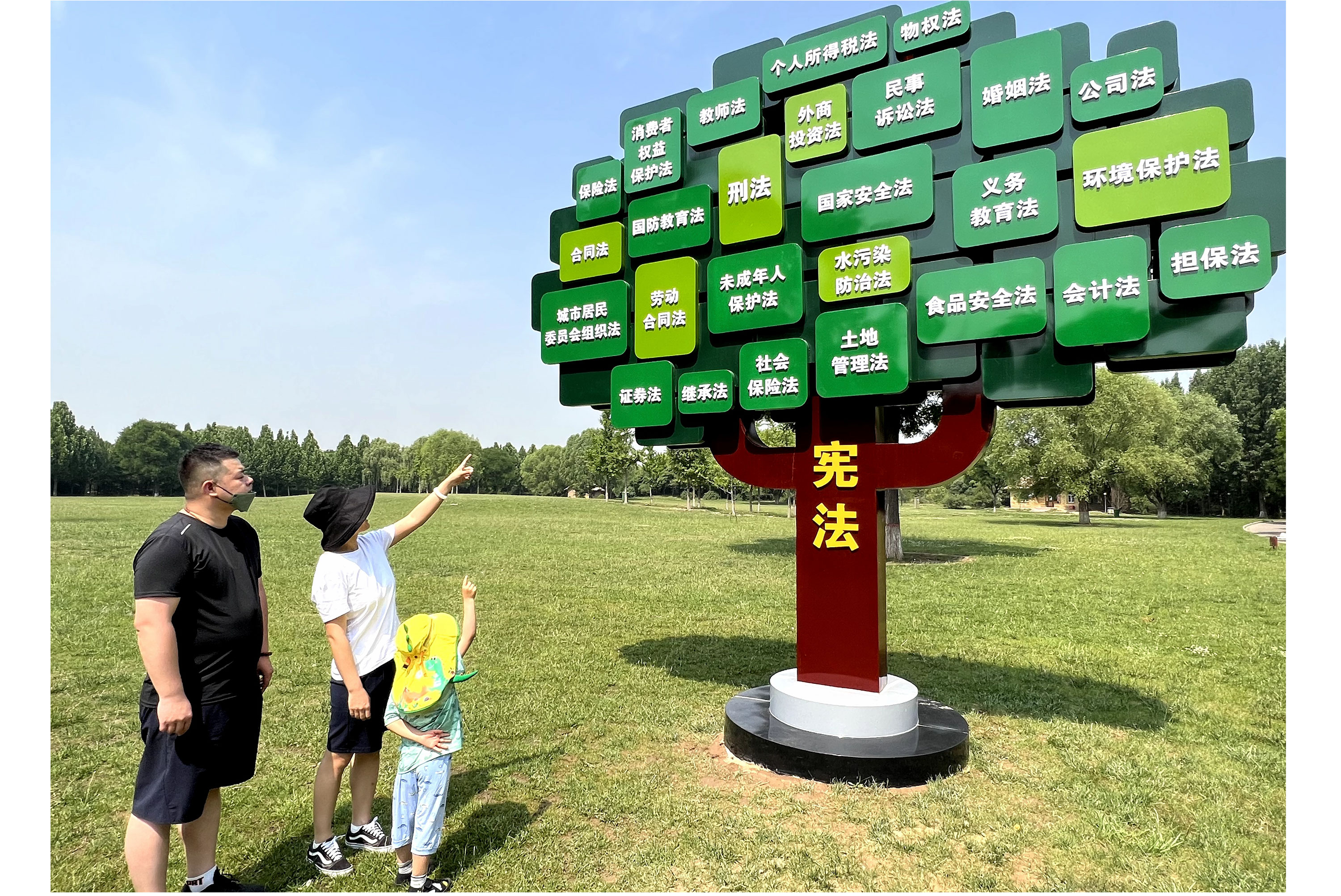家长带孩子打卡“宪法树”