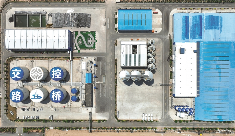 “我们园区位于文水县经济开发区,地处太原、晋中、吕梁三市的‘黄金交会点’,周边电厂、钢铁厂等产废企业众多,煤矸石、粉煤灰、铁尾矿、钢渣等大宗工业固废产量较大,但是利用率较低,大部分以堆存为主。”据介绍,在这样的大环境下,2020年4月山西路桥再生资源开发有限公司成立。此后,聚焦固废资源利用、绿色低碳发展,立足交通领域,投资建设了交通科技园,按照“固废资源利用,绿色低碳发展”理念,分二期建设。一期项目聚焦“生态构件、建筑3D打印、镁基声屏障、高性能掺合料、生态水泥、高品类橡胶沥青再生胶粒、沥青制品”七大业态,利用钢渣、CFB灰渣、粉煤灰等固废,采用多固废复合、蒸汽脱硫、3D打印等技术,生产路桥生态水泥、再生胶粒、高性能掺合料等系列工业固废产品。截至目前,一期各业态均已全面投产,2024年处理固废130万吨,产值1.4亿元。这种“废料重生”的循环模式,实现了工业固废的资源化、规模化利用,就仿佛土壤中的腐殖质转化为养分,催发绿色基建的蓬勃发展。