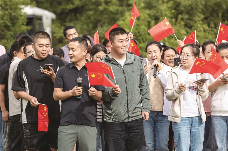 健步结束后,一场红歌对唱随即展开。现场四个方队竞相演唱《团结就是力量》《我和我的祖国》《歌唱祖国》《爱我中华》等红色歌曲,嘹亮歌声响彻现场,激昂旋律激荡人心,唤起了在场所有人的爱国情怀。红歌余音未了,知识竞答环节又拉开帷幕,现场未婚青年和新婚夫妇踊跃抢答婚育政策和移风易俗相关知识,大家边交流边学习,在轻松愉悦的氛围中收获满满。