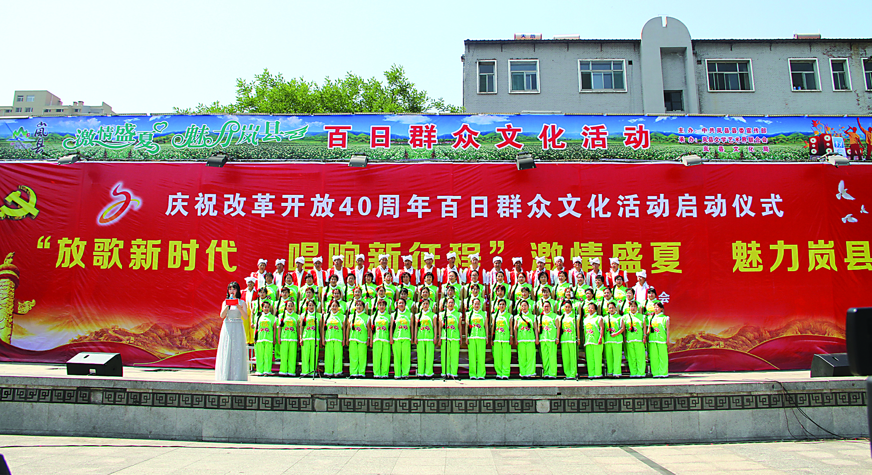 今年,“激情盛夏·魅力岚县”庆祝改革开放40周年百日群众文化活动以“放歌新时代,唱响新征程”为主题,以“文化三晋乐万家”为口号。此次百日文化活动,既有群众喜闻乐见的“庆祝改革开放40周年”大型歌会、“激情岚州”第七届中老年广场舞汇演、人民广场消夏文艺晚会专场、“我爱祖国唱起来”活动、“庆祝改革开放40周年”乡村群众文化系列活动、人民广场卡拉OK、电影放映和送戏、送电影、送文艺下乡活动等文艺展演,也有深受运动爱好者喜爱的“文明岚县”杯乒乓球赛、“体彩”杯职工拔河大赛、“文明岚县”杯篮球比赛、“文明岚县”杯羽毛球赛、“岚县土豆”杯第七届全球篮球擂台赛,还有能够展示地方特色的岚县非物质文化遗产展(面塑、剪纸、根雕),“庆祝改革开放40周年”摄影展、书画展,“梦想飞扬”杯青少年才艺大赛。