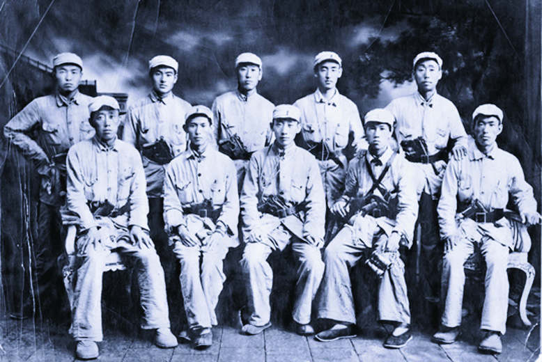 战役结束后,离石县武委会在汾阳合影留念,武委主任刘挺,离石县青救会主任王正选、阎权、王继刚、高义录、王俊仁、王开宁和我,在汾阳城照了这张相。